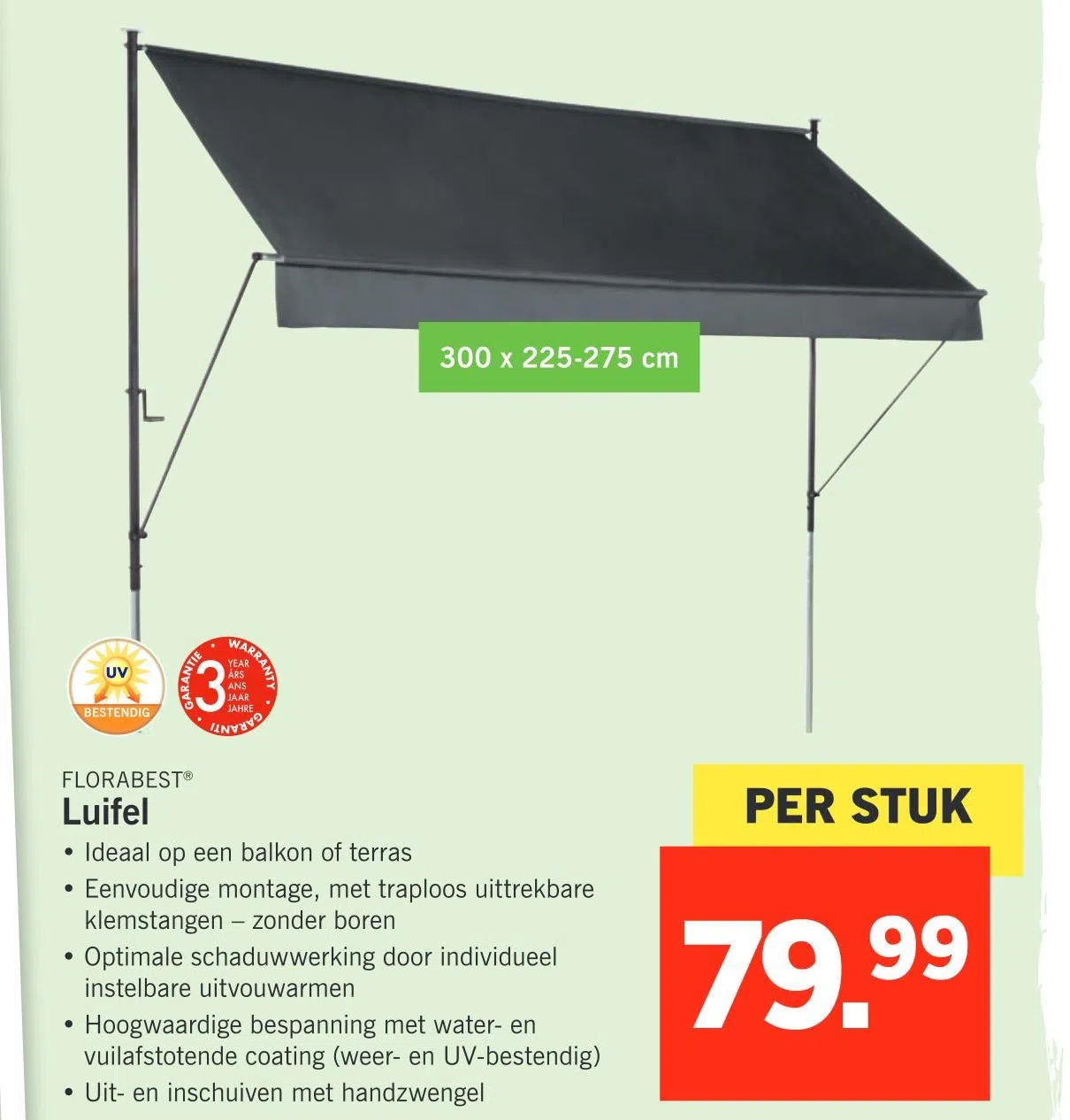 Lidl zonnescherm luifel. Een zacht slaapplekje voor je hond bij lidl online kopen kies je leverdag ook s avonds bezorgd 90 dagen bedenktijd gratis retourneren. Een parasol of luifel kan dan zorgen voor wat verkoeling of meer bescherming tegen de zonnestralen. Dan bent u vast benieuwd naar de prijzen. 8 schneider parasol 135 x 250 x 270 cm.